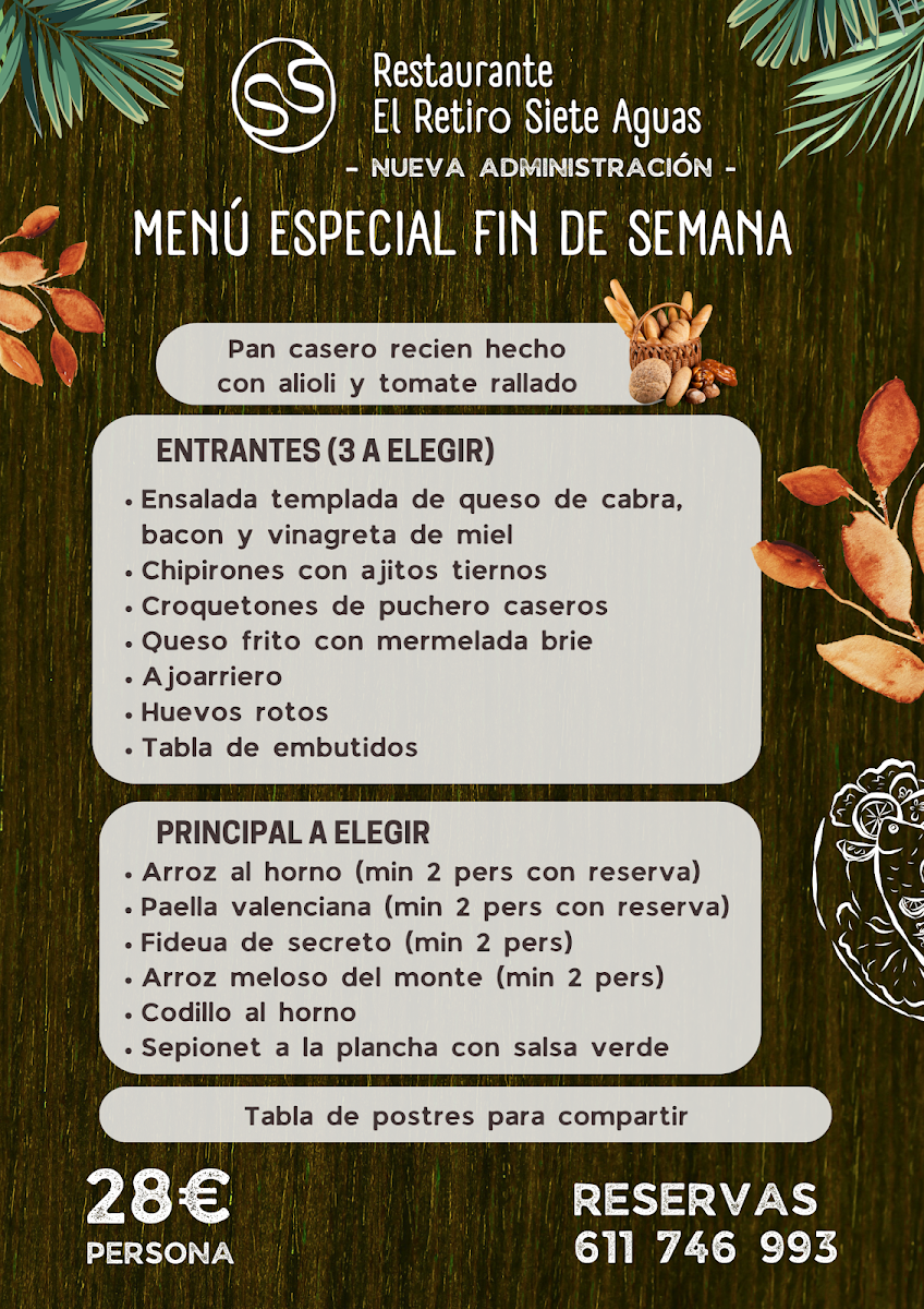 Welcome to Restaurante Retiro Siete Aguas, a Mediterranean culinary gem nestled in the charming urbanization of Siete Aguas, Valencia. Known for its rich offerings, the restaurant showcases a delightful array of traditional tapas like Morro Frito and exquisite paellas, including the aromatic Paella Valenciana and seafood variations, each promising an authentic taste of the region.